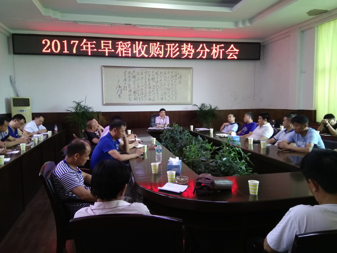 715上午,新余市糧食局召開2017年早稻收購形勢分析會。局黨委書記、局長李國俊出席并布置工作。局黨委委員、副局長劉霄主持。渝水區糧食局、市內二十余家烘干企業、新余糧油發展有限責任公司負責人等30余人出席。會上,參會代表暢所欲言,認真分析了今年早稻收購形勢,并就合理議價收購農民高水分糧達成一致意見。李國俊同志強調,各級各單位要精心抓好今年早稻收購工作,尤其是高水分糧收購工作,要強化服務,切實解決農民曬糧難問題,要嚴厲打擊收黑心糧行為,要切實維護種糧農民利益。各烘干企業要加強自律,堅持誠信原則開展經營活動,共同維護糧食流通秩序。