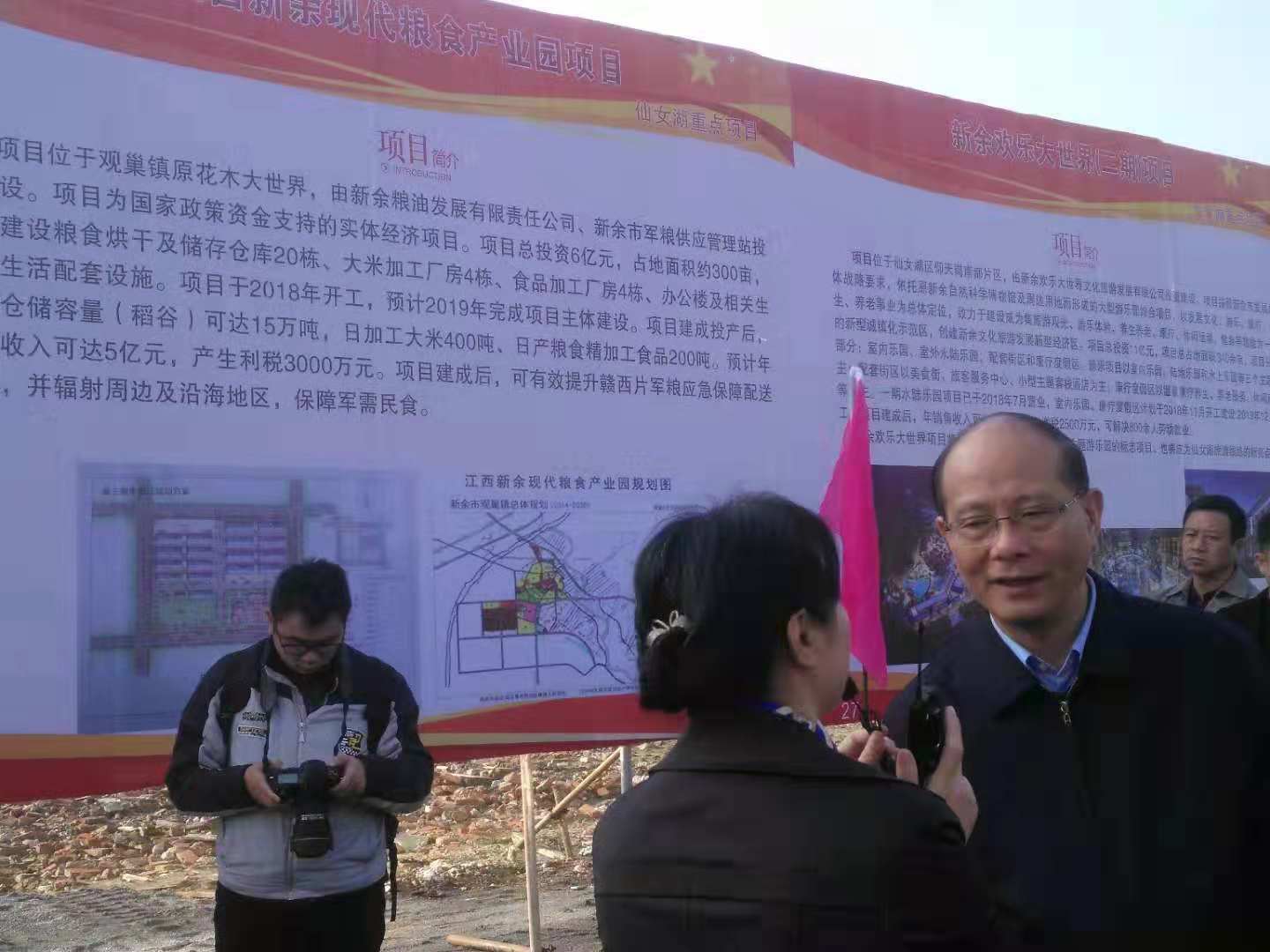 2018年11月29日上午,江西省吳曉軍副省長在新余現(xiàn)代糧食產(chǎn)業(yè)園展板前詳細了解項目進展情況。