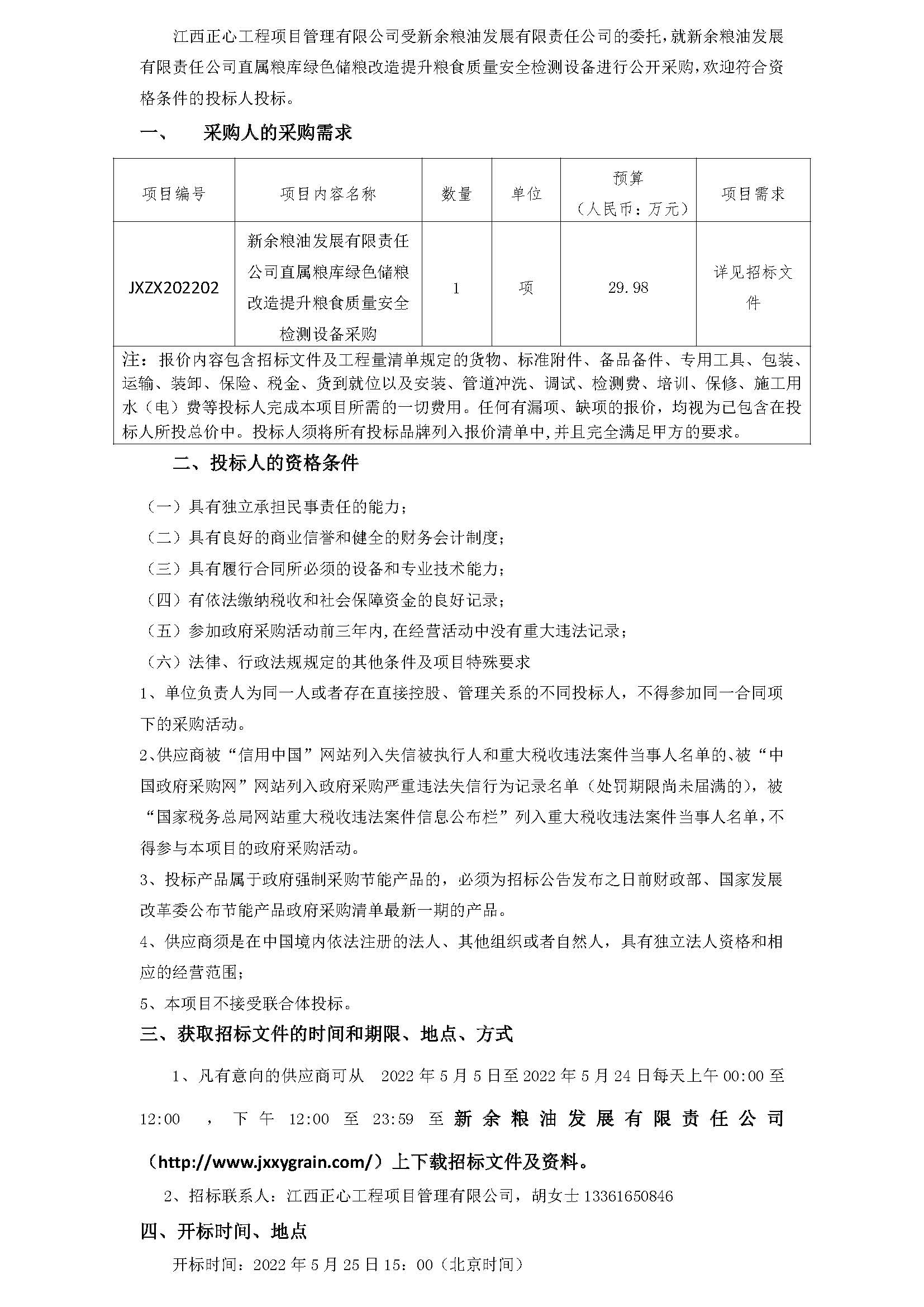 新糧公司直屬糧庫(kù)綠色儲(chǔ)糧改造 提升糧食質(zhì)量安全檢測(cè)設(shè)備采購(gòu)項(xiàng)目采購(gòu)公告