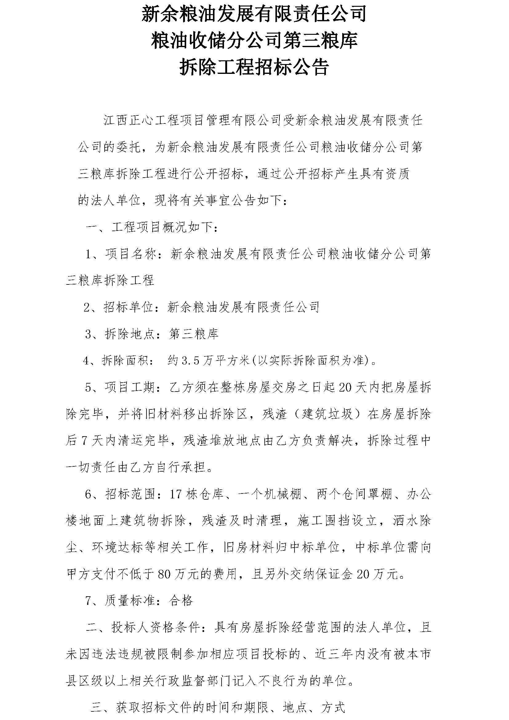 糧油收儲分公司第三糧庫拆除工程招標文件