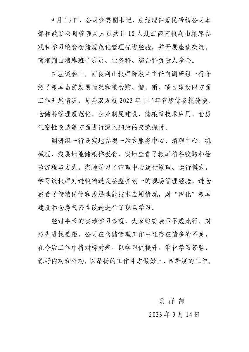 新余糧油集團有限公司總經理鐘愛民帶隊